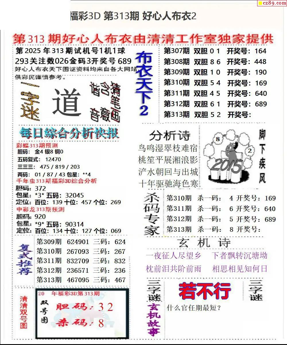 「福彩3D」3d开奖结果-走势图-试机号-杀号定胆-字谜预测